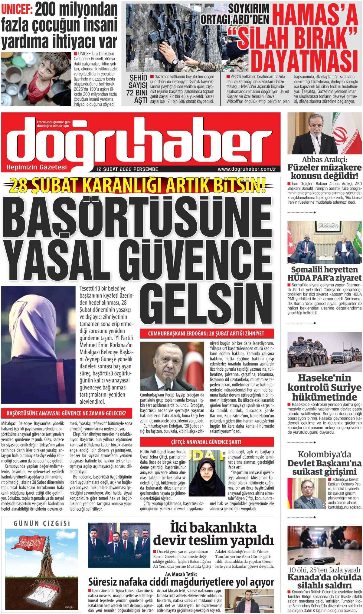 Doğru Haber Gazetesi 13 Şubat 2026 Günü Gazete Manşetleri