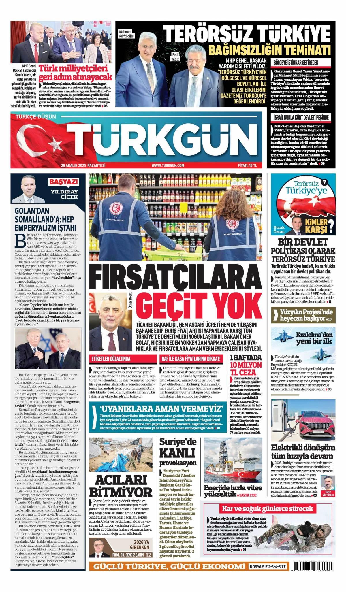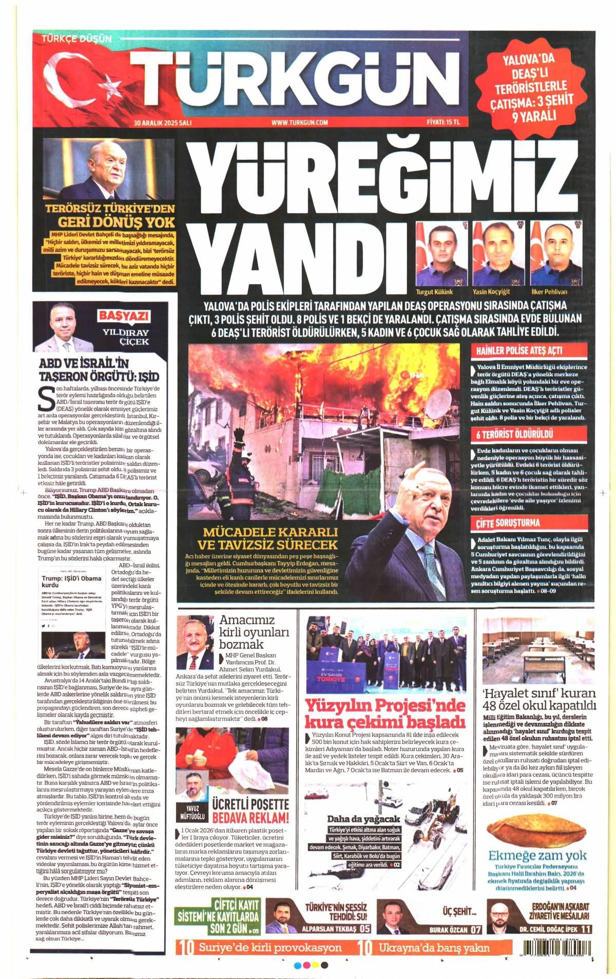 Türkgün Gazetesi 30 Aralık 2025 Günü Gazete Manşetleri
